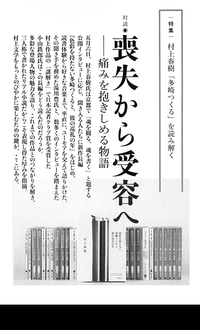 筒井康隆『聖痕』(貴志祐介)/津島佑子『ヤマネコ・ドーム』(原宏之)/小川洋子『いつも彼らはどこかに』(中条省平)/伊藤比呂美『犬心』(紅野謙介)/高橋源一郎『銀河鉄道の彼方に』(瀬尾育生)/花村萬月『色』(八木寧子)/大澤信亮『新世紀神曲』(池田雄一)/古川日出男『南無ロックンロール二十一部経』(湯浅学)